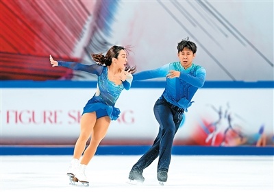 隋文静(左)/韩聪在自由滑比赛中。 新华社记者黄伟 摄